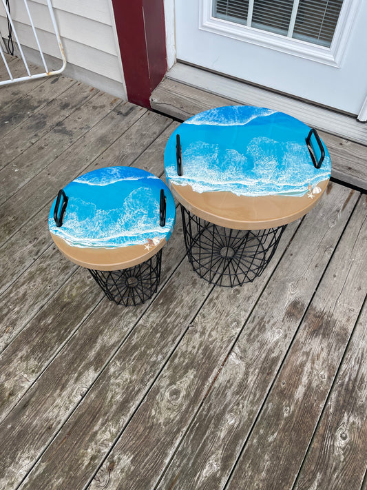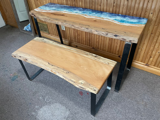 Walnut Coffee Table w/ Blue Ocean Epoxy