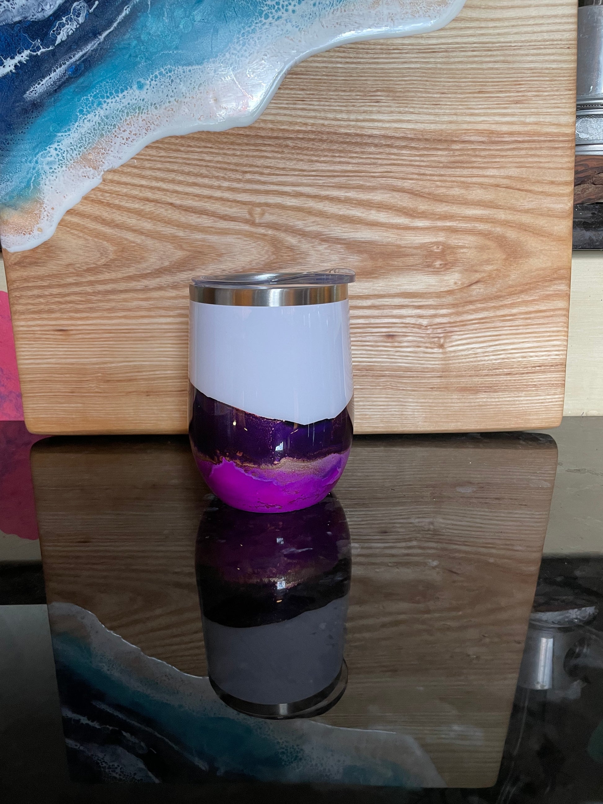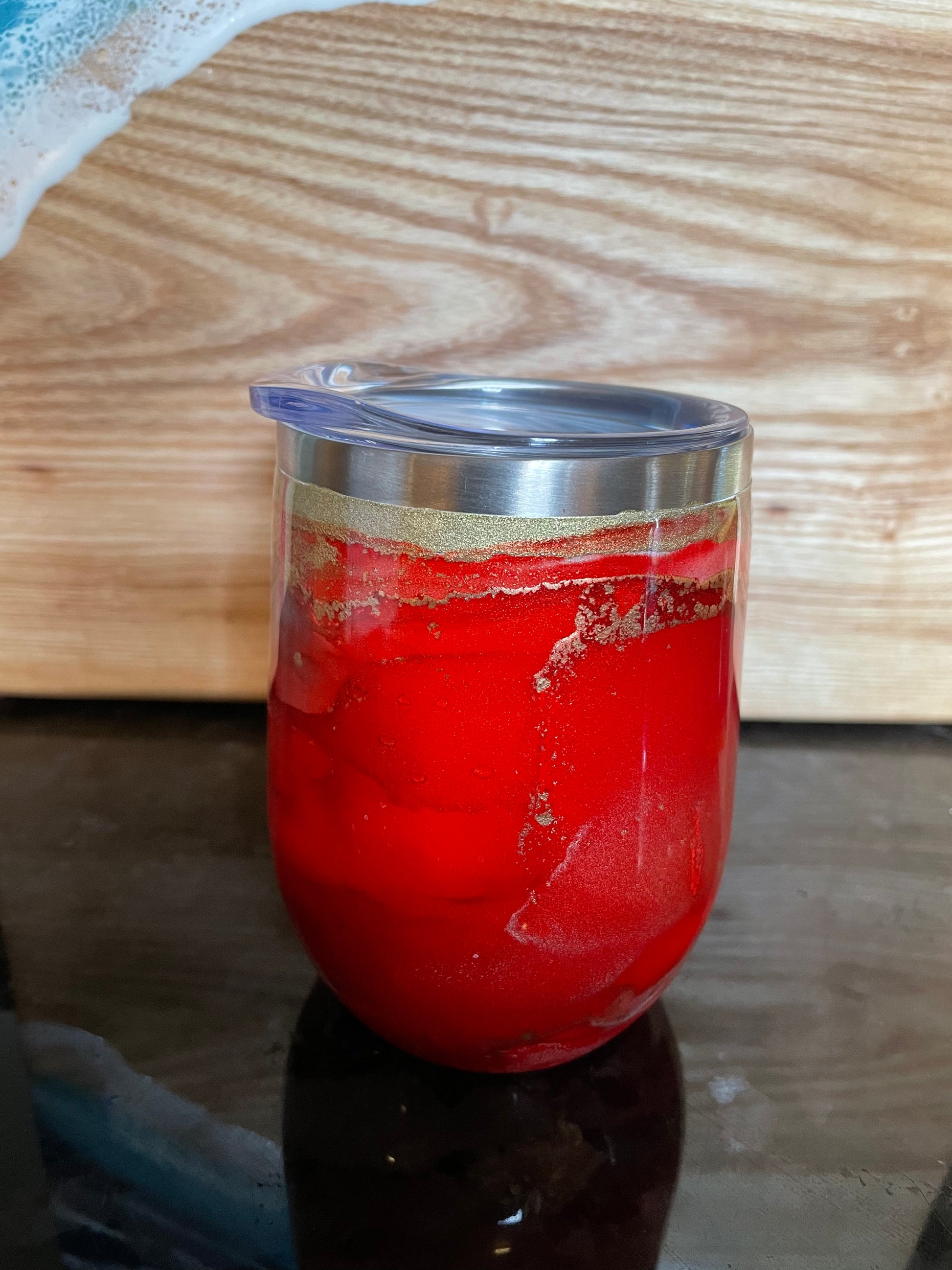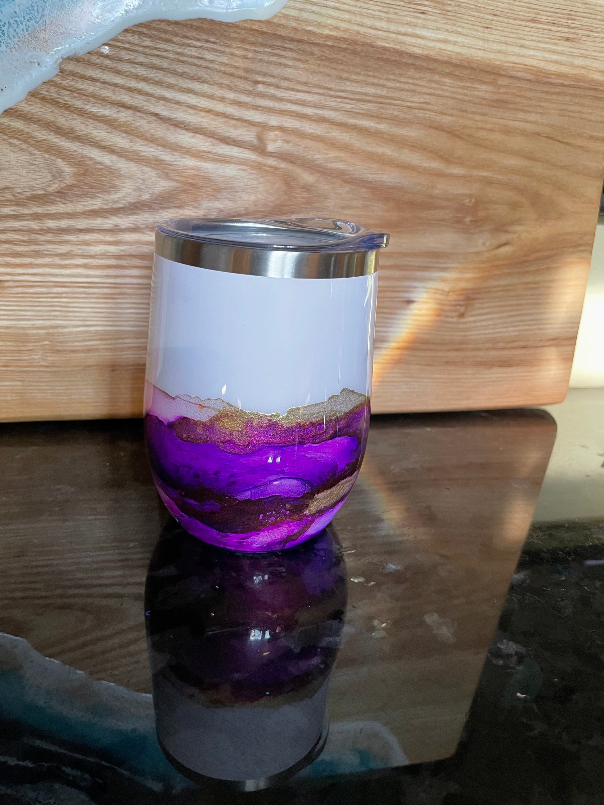 Stainless steel 12oz tumbler for hot or cold drinks.