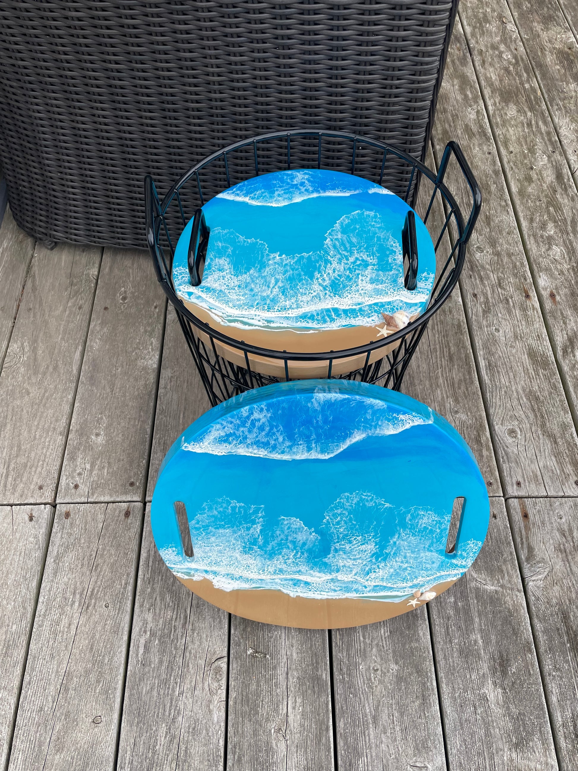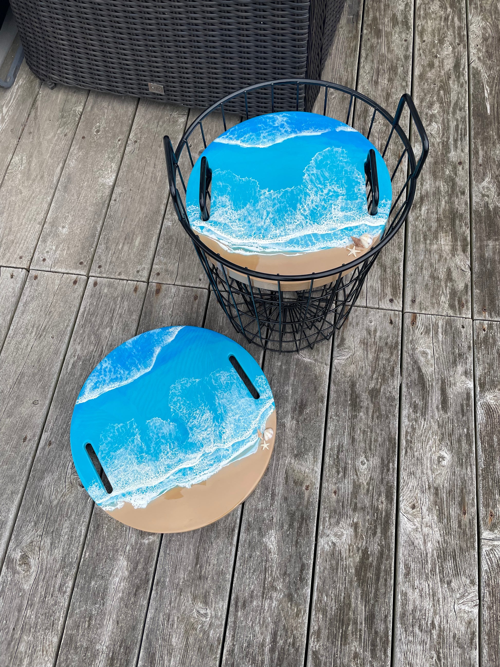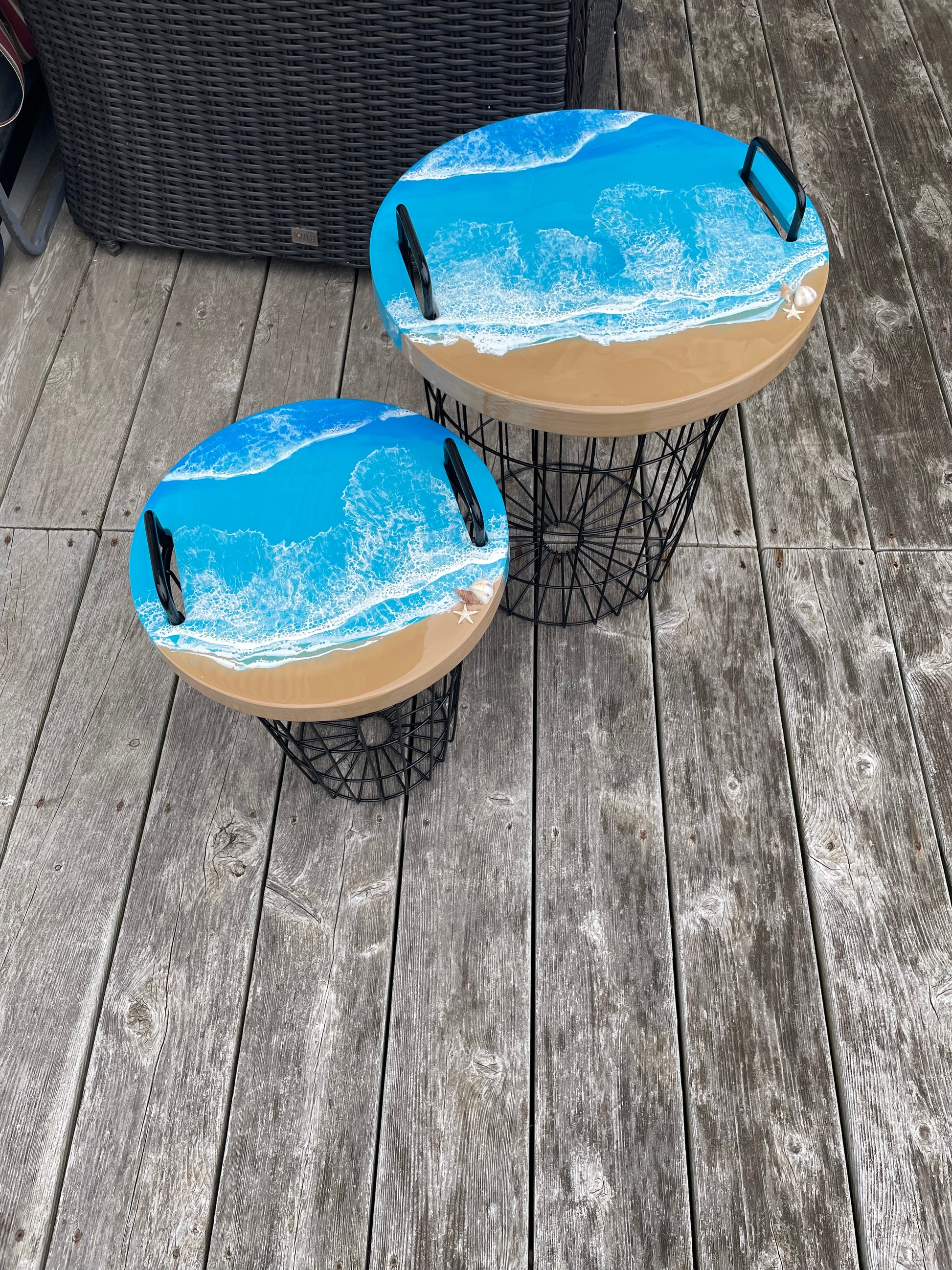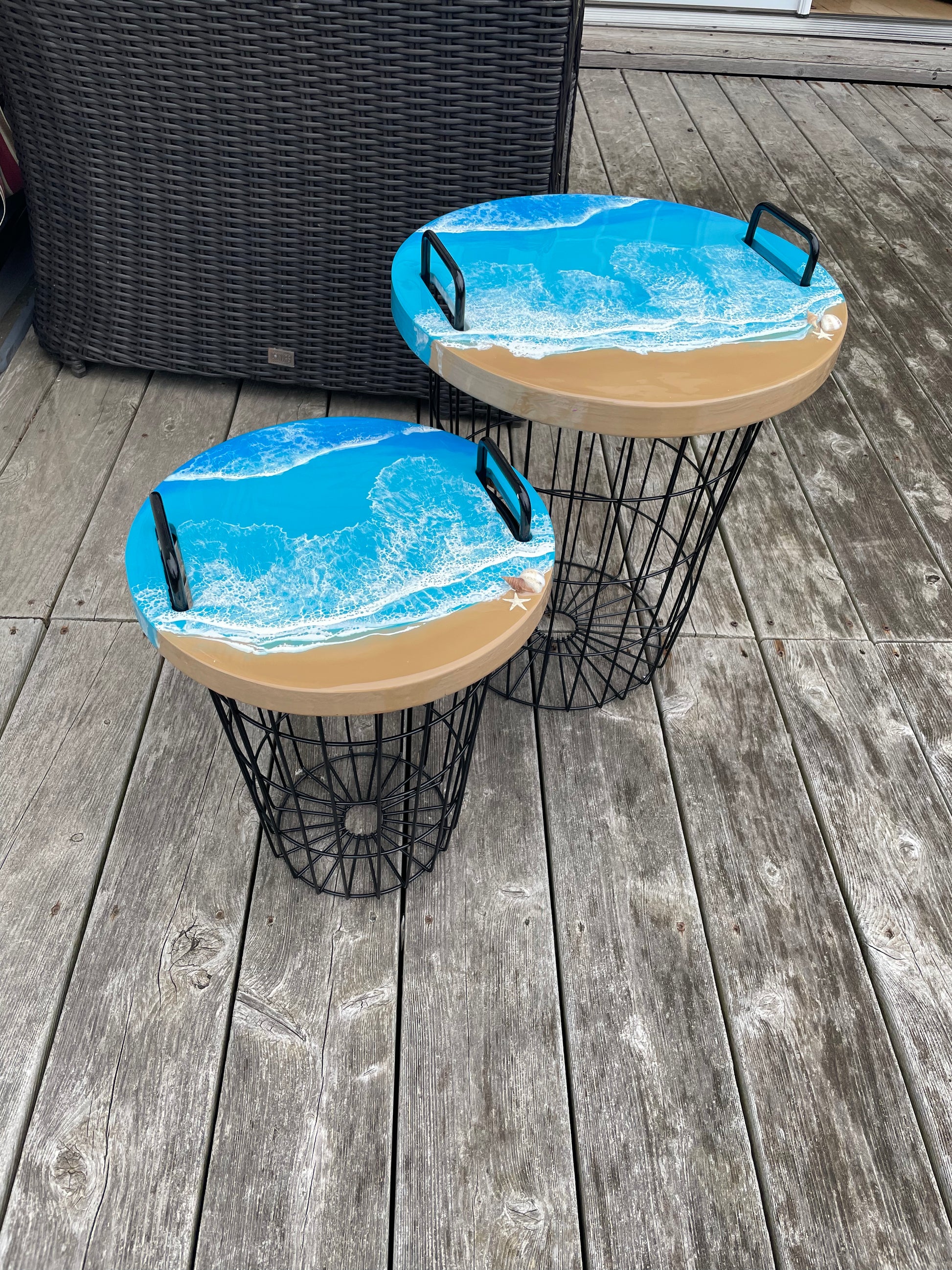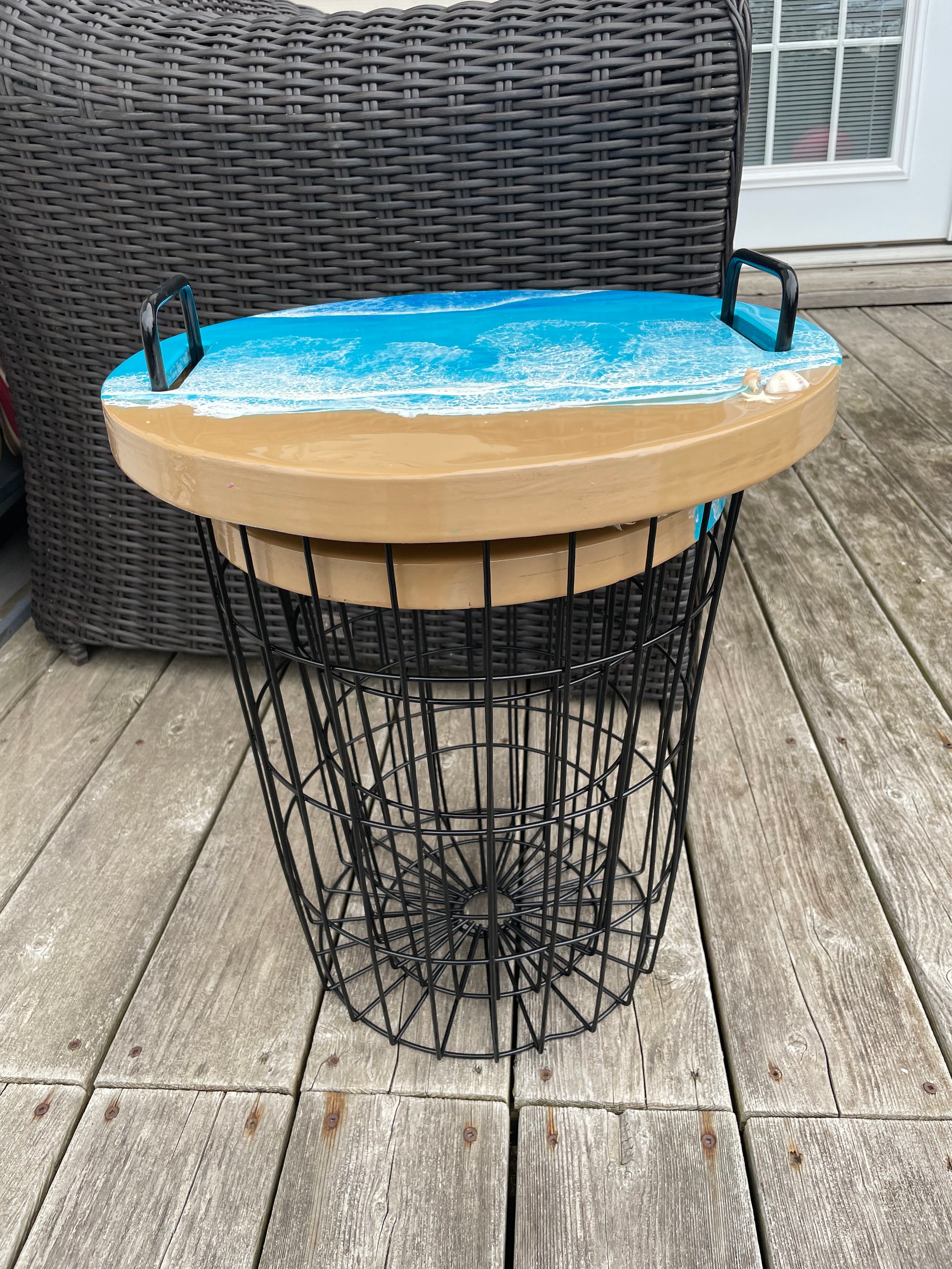 These cute beach table top basket side tables are ready to accent your space. With storage options in the basket these side tables for perfectly in any space.