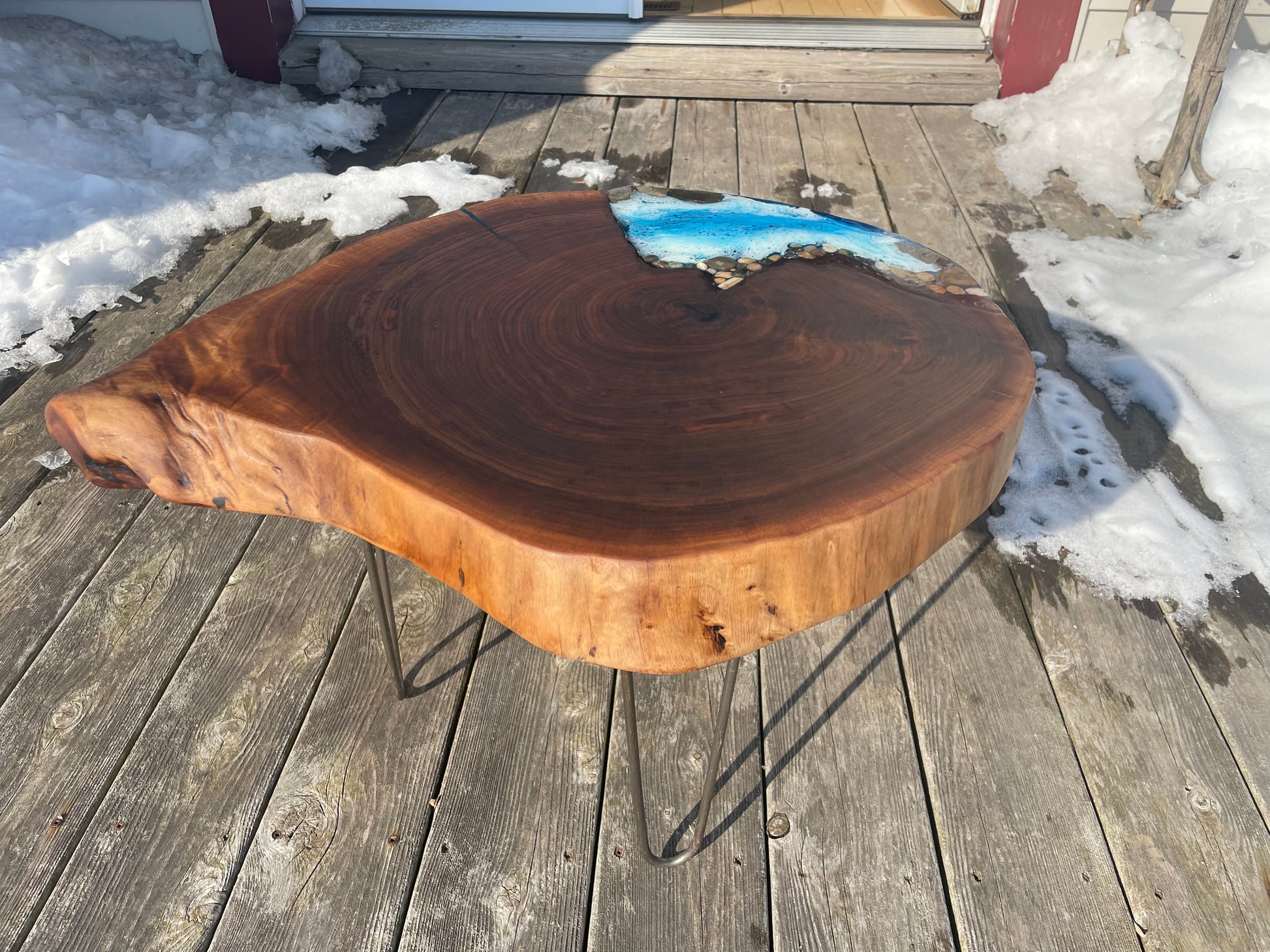 Walnut Coffee Table w/ Blue Ocean Epoxy